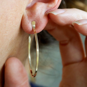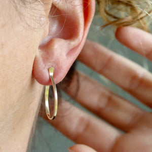 Rustic and modern at the same time, and reminiscent to me of ancient Egyptian jewelry, these feather light oval hoops are sculptural and feminine. Due to their full round shape with gorgeous curves, they are called Bisu, after the Egyptian god of childbirth, pregnant women, children, and the household. He was thought to be both a fierce warrior, and an entertainer of children, which sounds pretty much like most of the women I know. Bisu later came to be regarded as the defender of everything good and the enemy of all that is bad, and well, you just can't beat that.