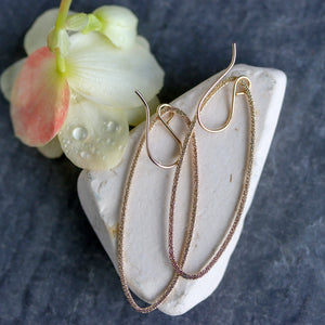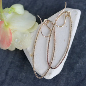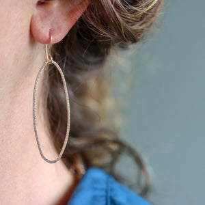 Simple narrow hammered oval dangles with sparkle texture. Approximately 2 inches long. Available in sterling silver or 14k gold fill.