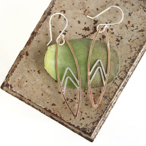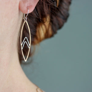 Open ellipse shape with stylish geometric details. Approximately 1.5 inches long, including the handmade french wire hooks.
