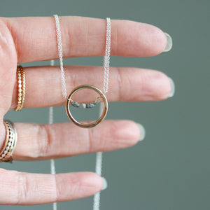 Available in 16, 18, and 20 inch lengths. Metal options include sterling silver, sterling silver & 14k gold fill mix, and 14k gold fill. (mixed metal option has a silver chain, and gold fill center pendant.)