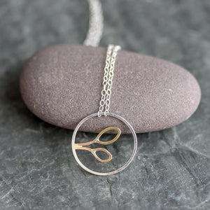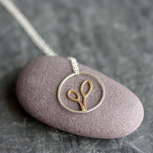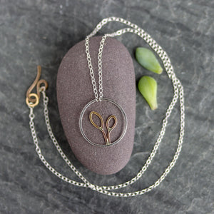 Nature inspired necklace made from hammered wire with pretty botanical details. This nature inspired design features a young tender sprout or branch in the center of an open circle pendant. This pendant will move around a bit on the chain (see the 2nd and 3rd images), so gentle and organic asymmetry is a fundamental part of the design, as it is in nature. (Full disclosure: if the fact that the little sprout won't always be sprouting straight up and down will drive you crazy, this probably isn't the necklace for you!)