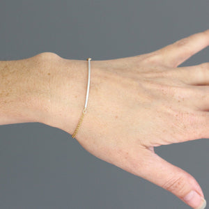 This simple minimalist bracelet is a great go to piece for almost any occasion. It's clean, lightweight design is flattering and great layered or alone. Equally at home at a day at the the beach, or on a night out.