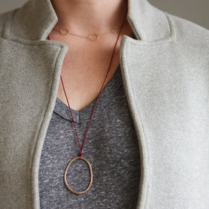 Minimalist and modern with a little bohemian flair, this necklace looks great adding a pop of color over a simple summer dress, or adding a little sophistication to a tee shirt and jeans. Made with comfortable, durable, and water safe goretex cord this design is sturdy enough to hit the trail, head to a BBQ, or lounge by the pool. Just pick your favorite color and go.